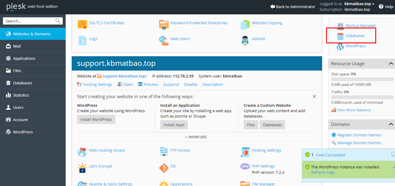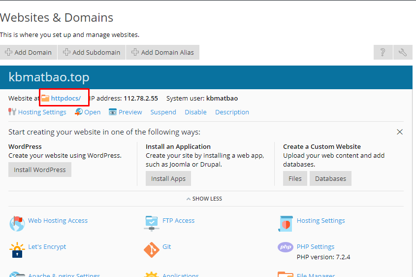 Bước 1: Vào File Manager –> Upload source wp vào thư mục httpdocs