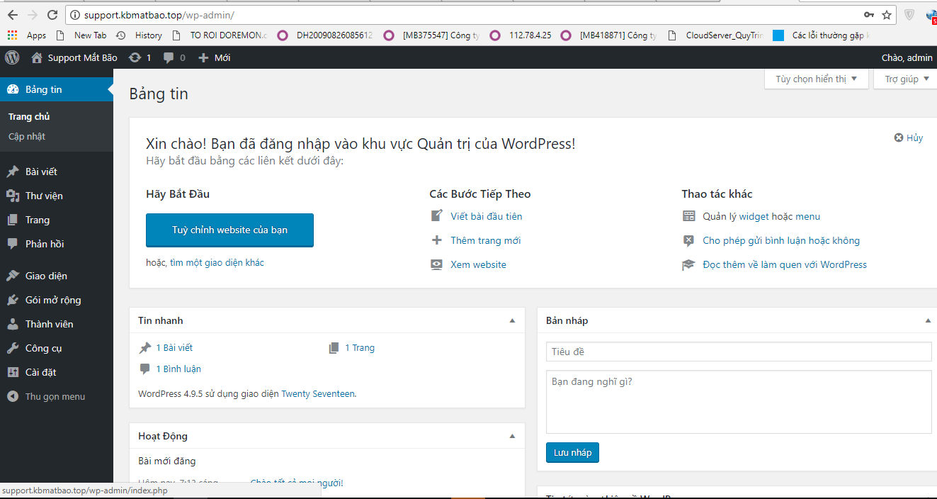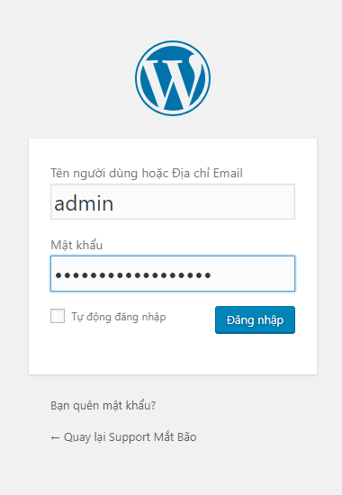 Đây là trang quản trị của WP, bạn vui lòng thao tác chỉnh sửa tiếp