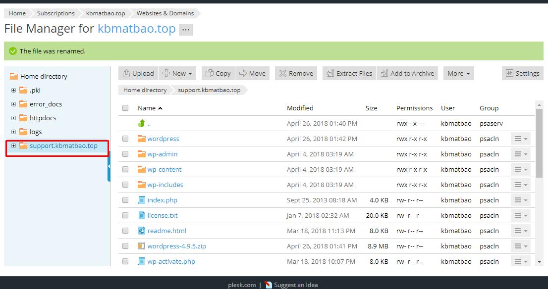 Vào mục Upload → Up toàn bộ dữ liệu đã dowload trước vào và giải nén ở mục Extract Files (ở đây đang up dữ liệu vào subdomain support.kbmatbao.top)