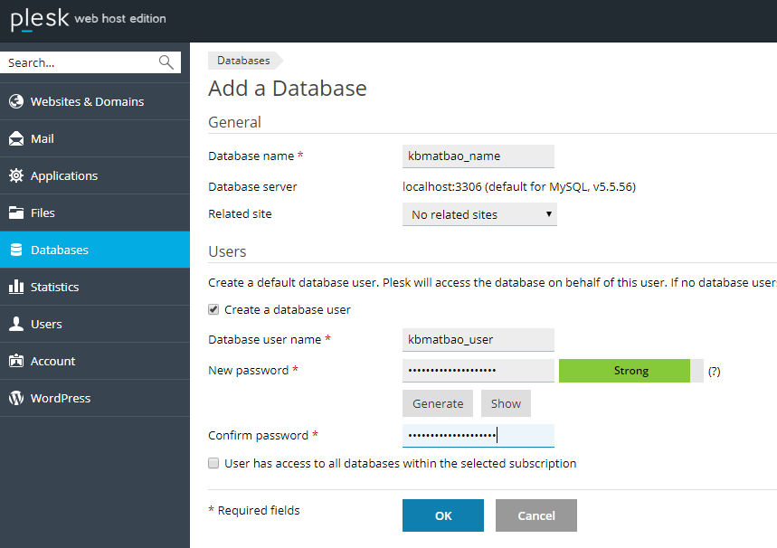 Database → Add Database → Nhập thông tin tên database, pass của tên database và User database, pass của User database → OK