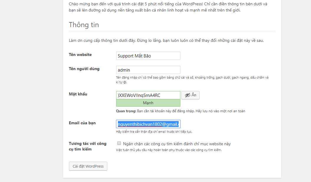 Cuối cùng click vào Cài đặt WordPress và Đăng nhập